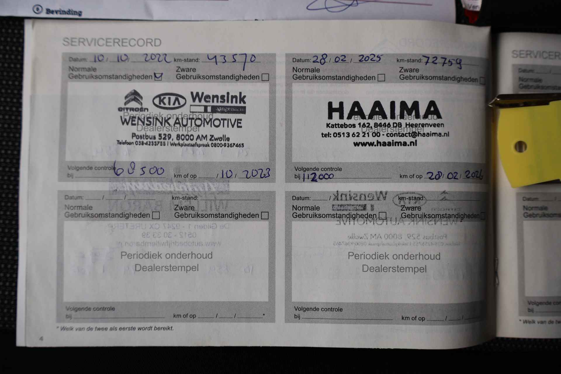 • Km. stand: