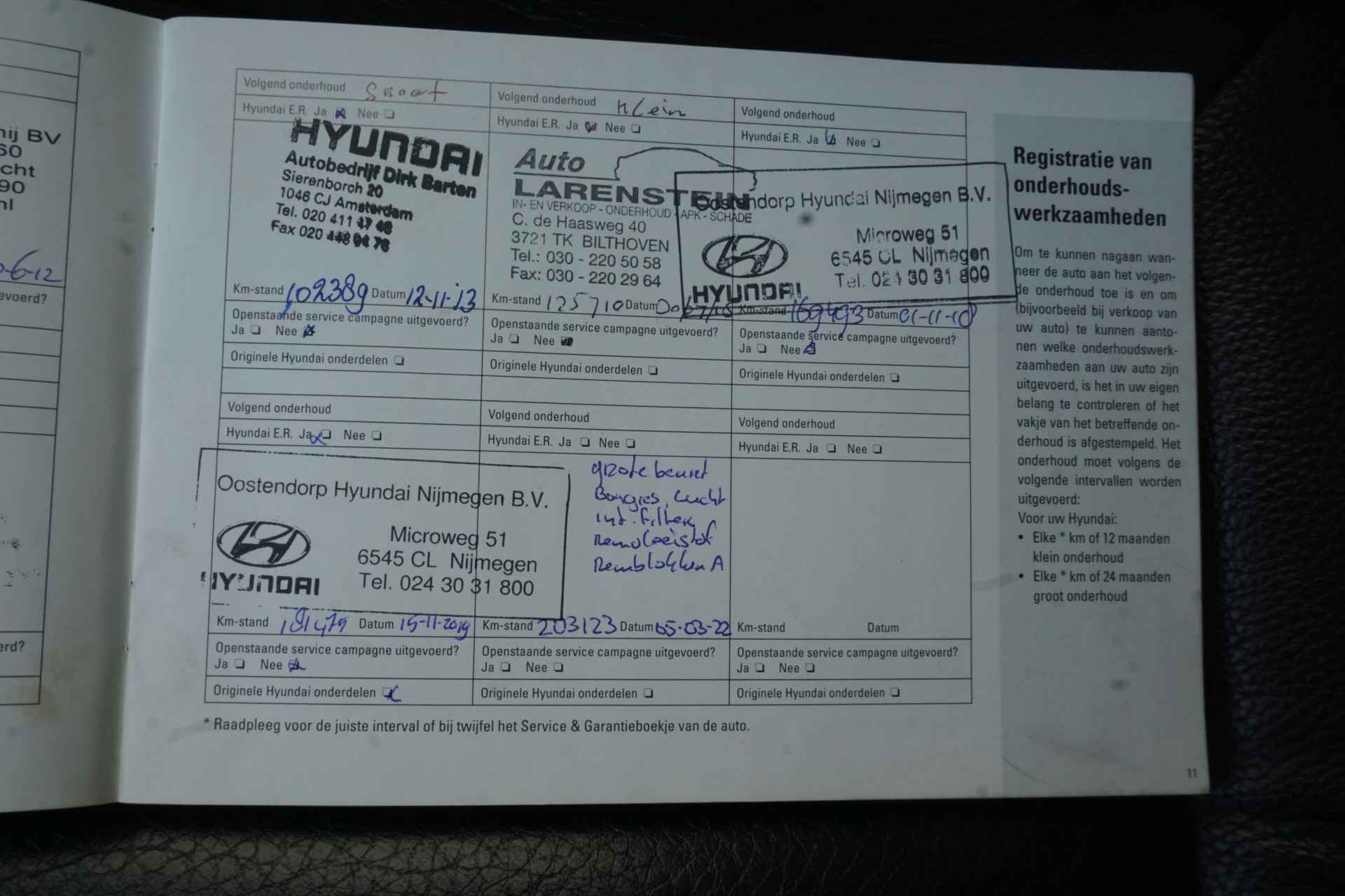 • Km. stand: