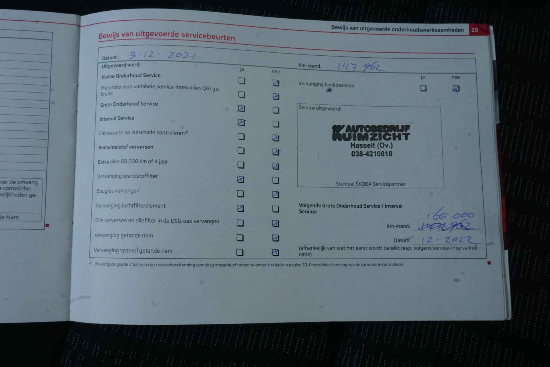 • Km. stand: